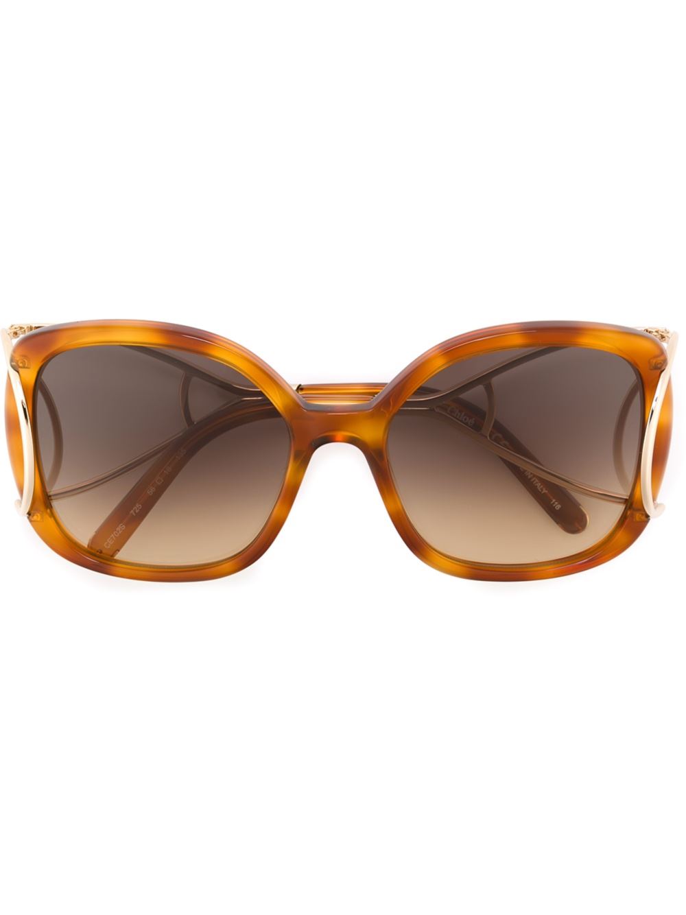 - Chloé 褐色 醋酸纤维与金属 'Jackson'太阳眼镜。 方形镜框, 玳瑁效果, 有色镜片。请注意,这件商品附带保护壳。