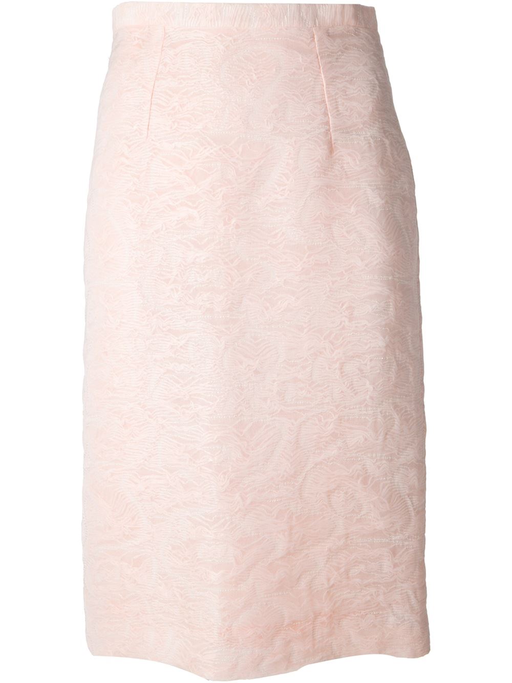 - Jean Louis Scherrer Vintage 淡粉色 提花高腰半身裙. 后置隐藏式拉链. 提花效果. 腰边饰有针脚. 平直下摆. 请注意古着商品不是新的,因此可能有轻微的瑕疵。