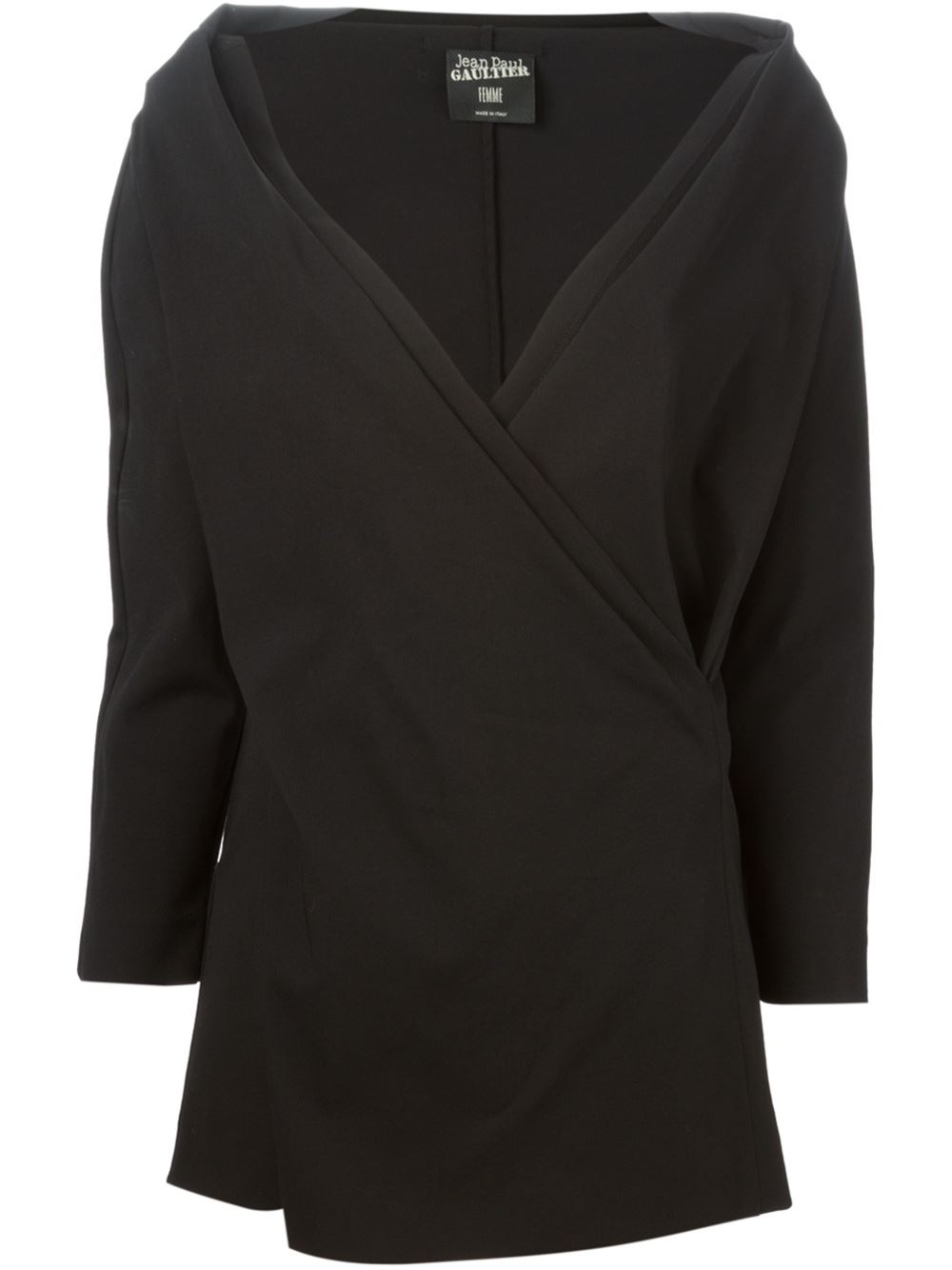 - Jean Paul Gaultier Vintage 黑色 羊毛混纺 裹身式长版上衣。这件商品源自于1990年代期间。请注意,古着(vintage)商品并非新的,因此可能有轻微的瑕疵。