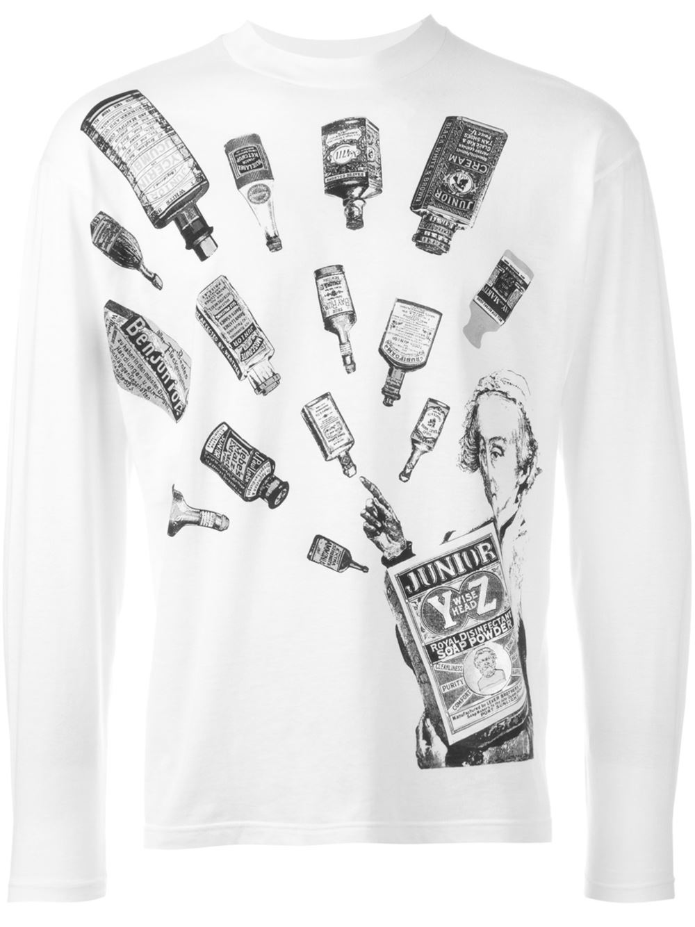 - Jean Paul Gaultier古着 白色与黑色 全棉 古着印花长袖T恤。 圆领, 长袖, 平直下摆。请注意,古着(vintage)商品并非新的,因此可能有轻微的瑕疵。