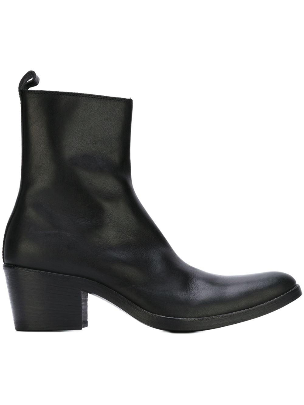 - Haider Ackermann 黑色 牛皮 高跟短靴。