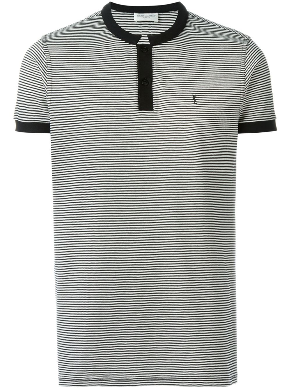 - Saint Laurent 白色与黑色 全棉 polo衫式上衣。 梯形领, 正面竖排纽扣, 短袖, 罗纹袖口, 平直下摆。