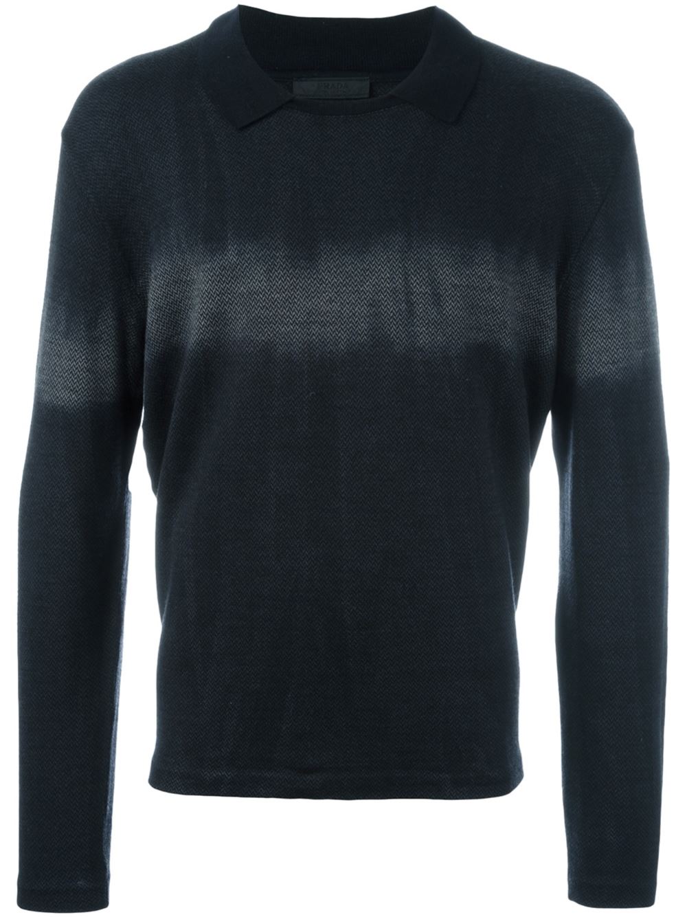 - Black wool chevron knit sweater from Prada Vintage featuring a spread collar, dropped shoulders, long sleeves and a straight hem. Circa 1990. Please note that vintage items are not new and therefore might have minor imperfections.