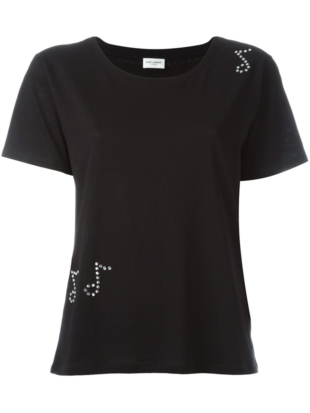 - Saint Laurent 黑色 全棉 音符铆钉T恤。 圆领, 短袖, 平直下摆。