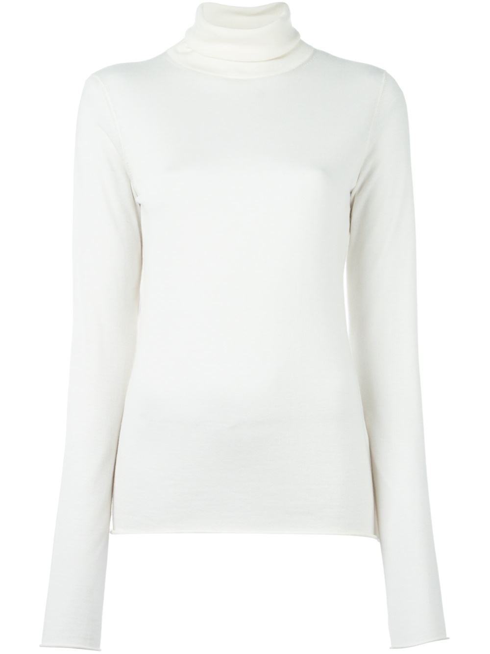 - Chloé 白色 羊绒 高领毛衣。 磨损边, 平直下摆。