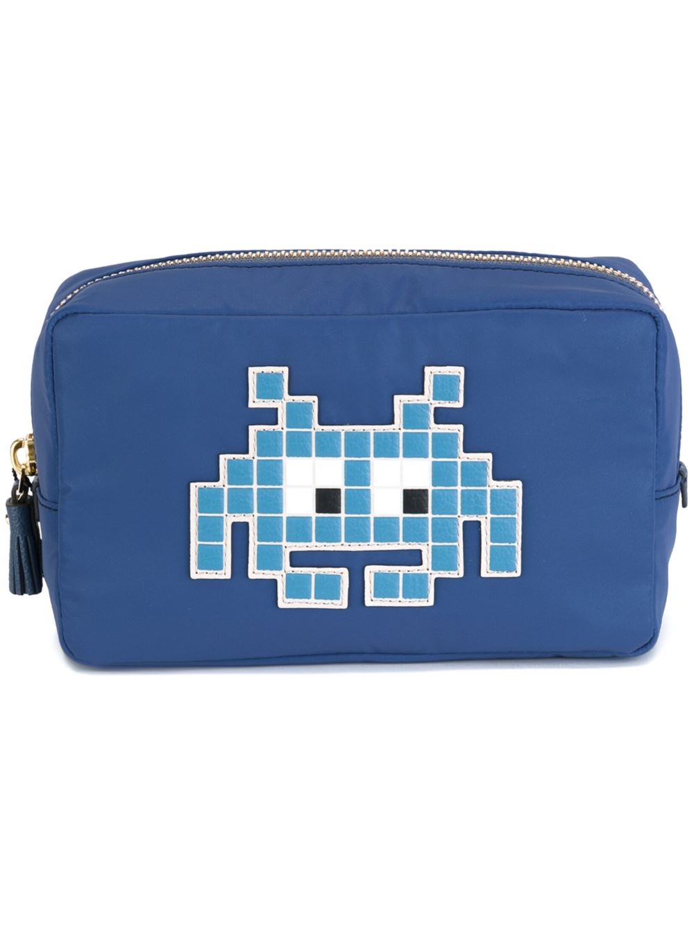 - Anya Hindmarch 蓝色与绿色 'Space Invader'化妆包。