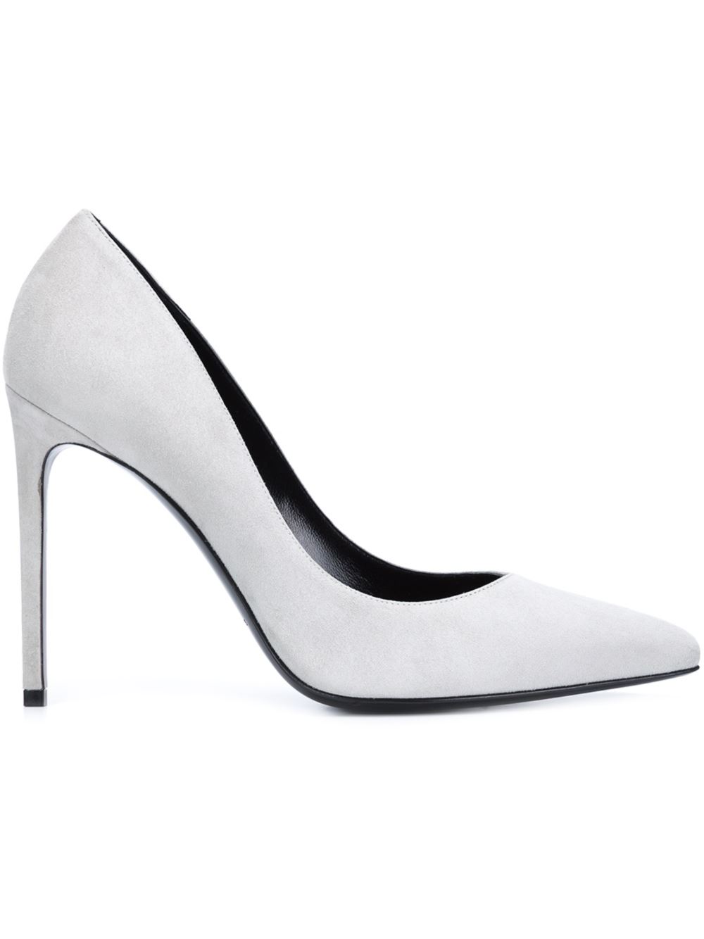 - Grey leather and suede 'Paris' pumps from Saint Laurent featuring a pointed toe, a brand embossed insole, a slip-on style and a high stiletto heel.