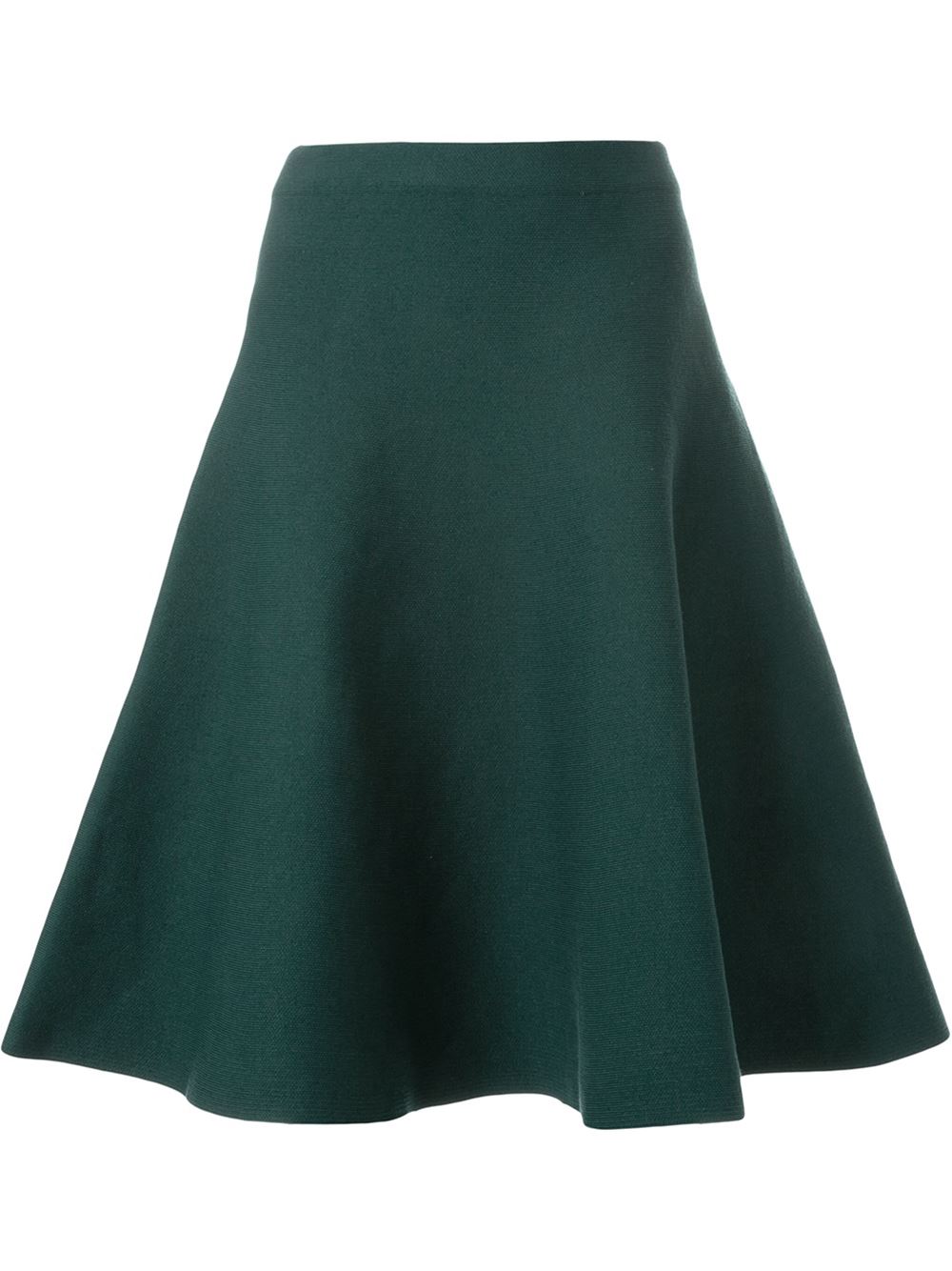 - Le Ciel Bleu 深绿色 棉质混纺 伞形半身裙。