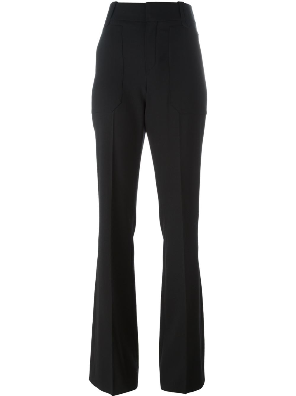 - Chloé 黑色 弹性羊毛 合身喇叭裤。 系腰带袢腰边, 高腰, 隐藏式正面开合, 贴袋, 折痕, 长款, 平直下摆。这件商品尺码偏大,请选择小一号。