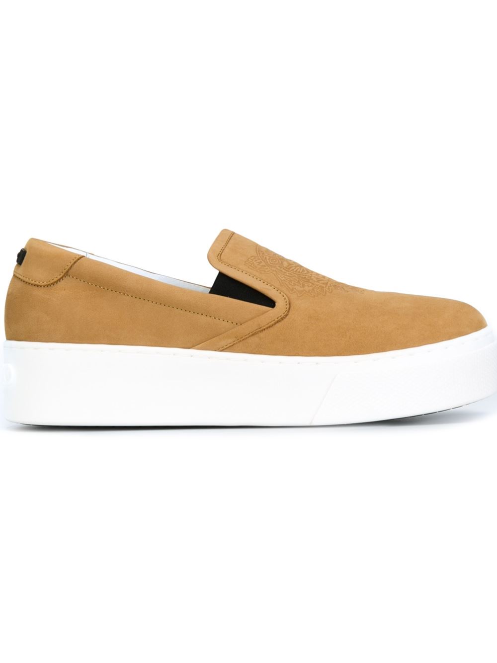 - Kenzo 裸色 小牛皮 'Tiger'板鞋。 穿套式, 侧面采用弹性松紧拼接, 圆头。