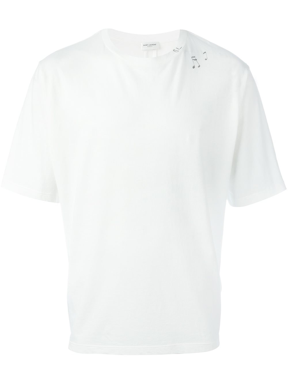 - Saint Laurent 白色 全棉 音符印花T恤。 罗纹针织圆领, 短袖, 平直下摆。