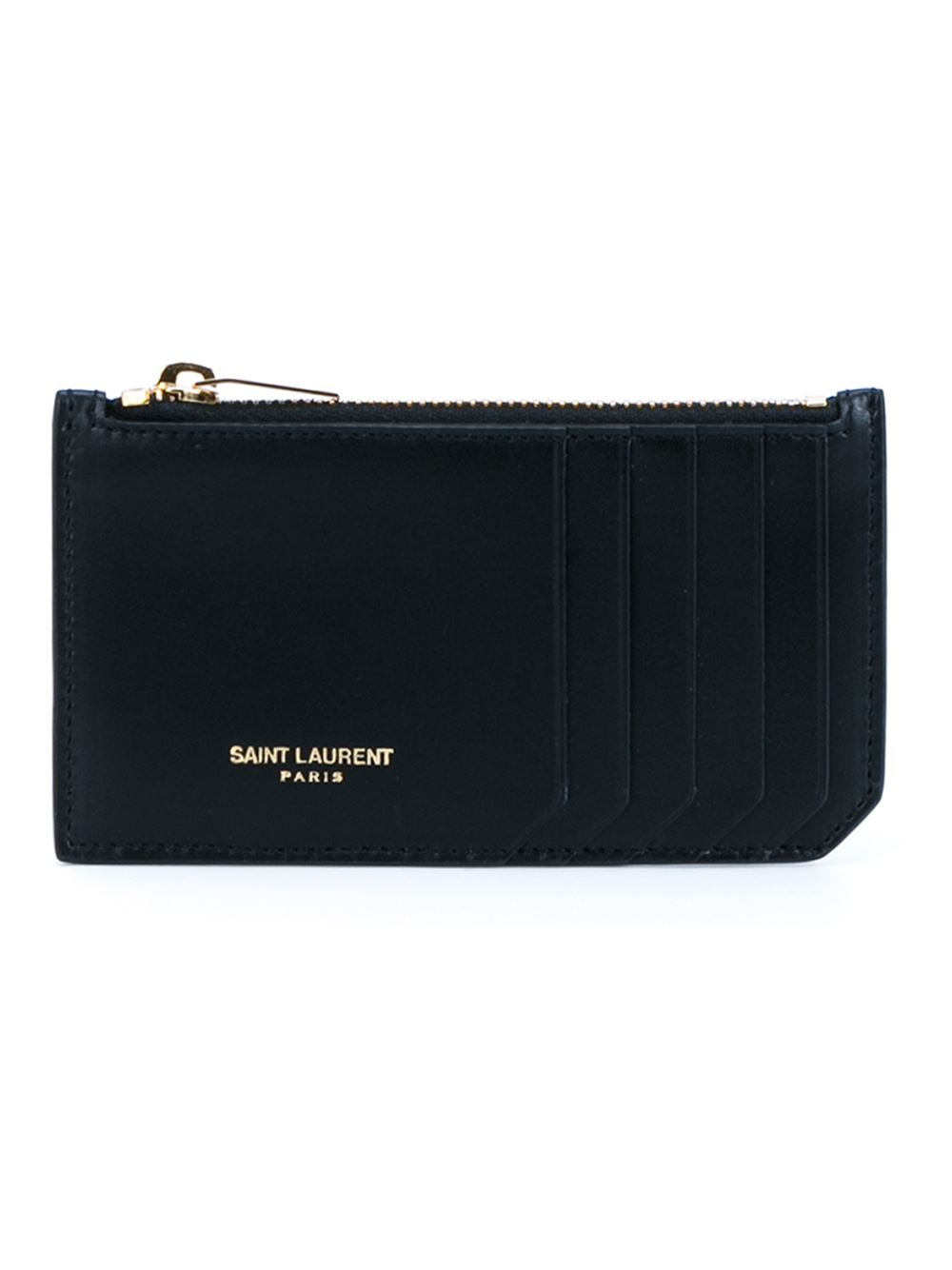 - Saint Laurent 黑色 牛皮 皮革卡夹。 顶置拉链, 金色标识。