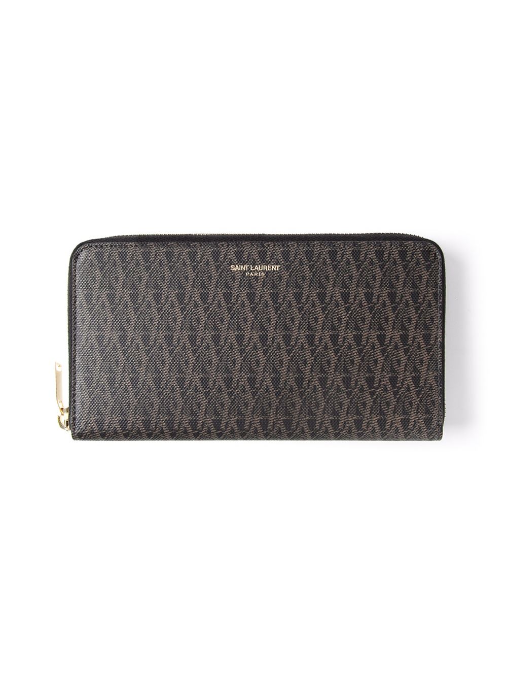 - Saint Laurent 棕色 真皮 花押字印花钱包。 环绕式拉链, 外置标志, 多个夹层, 内置浮雕标记, 零钱口袋。