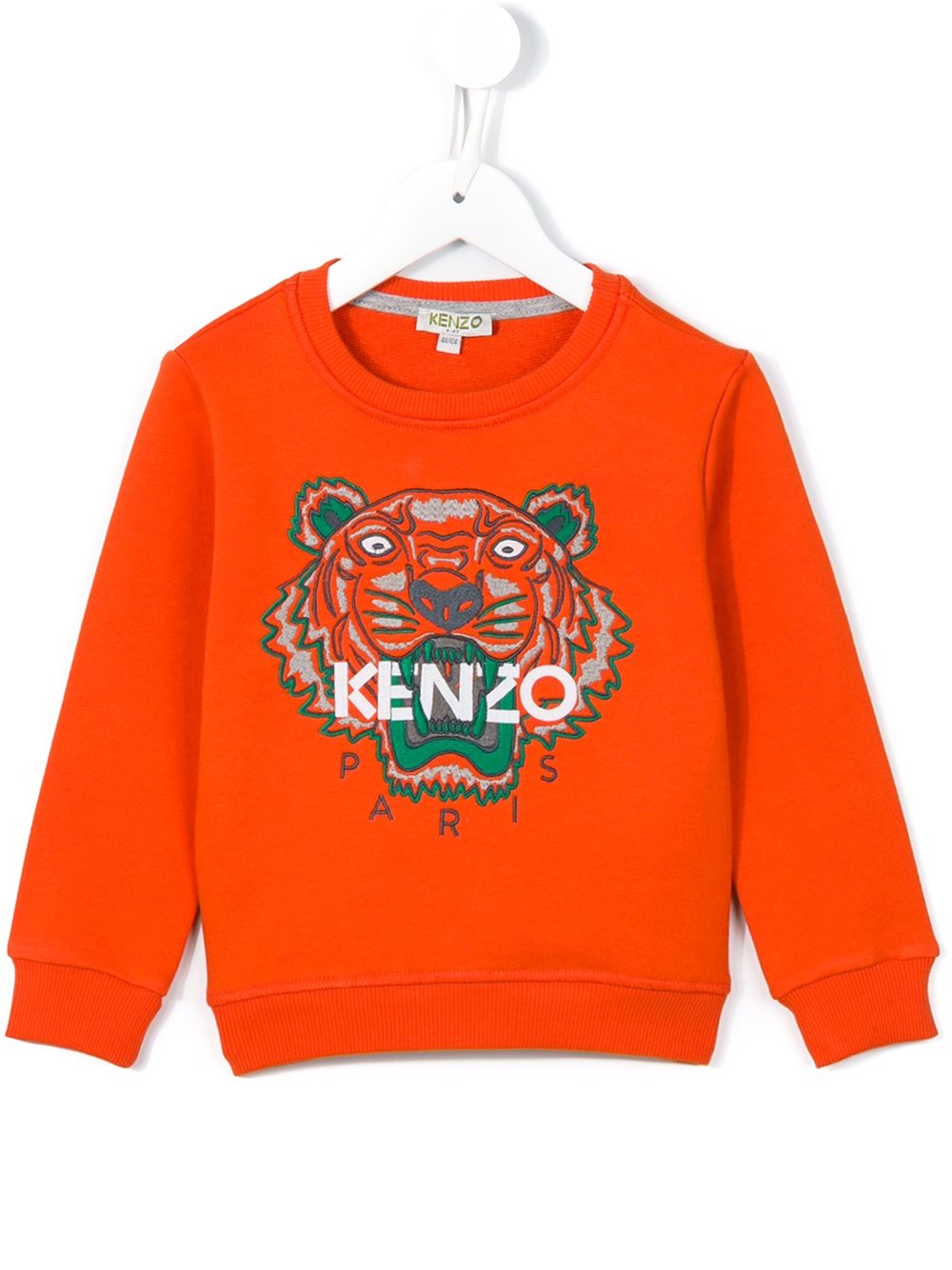 - KENZO KIDS 橘色 全棉 'Tiger'套头衫。 罗纹针织圆领, 长袖, 罗纹底边及袖口。