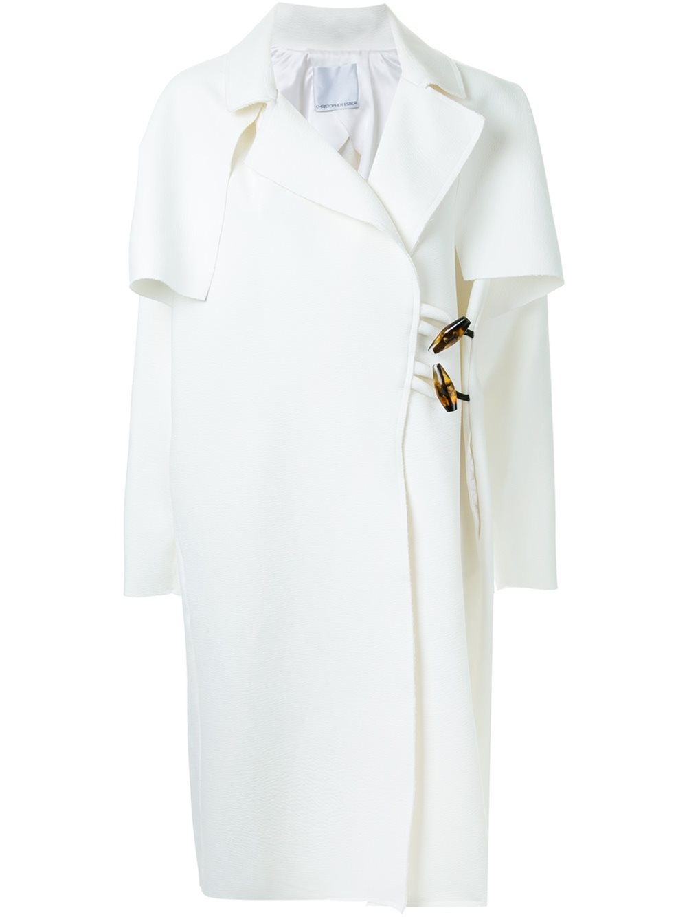 - Christopher Esber 白色 斗篷牛角扣外套。