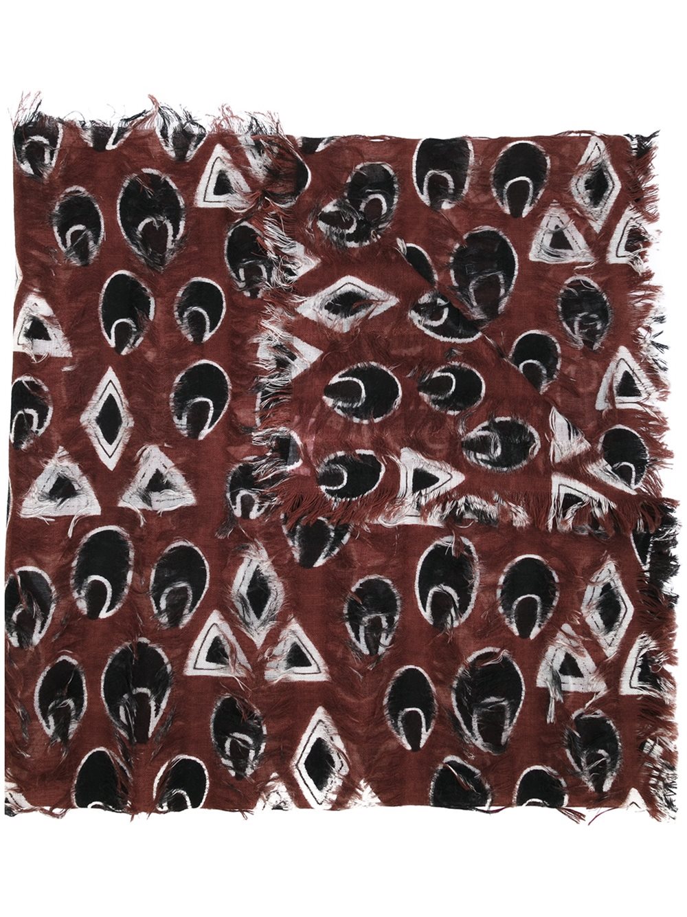 - Chloé 红色 羊毛与丝绸混纺 印花磨损边围巾。