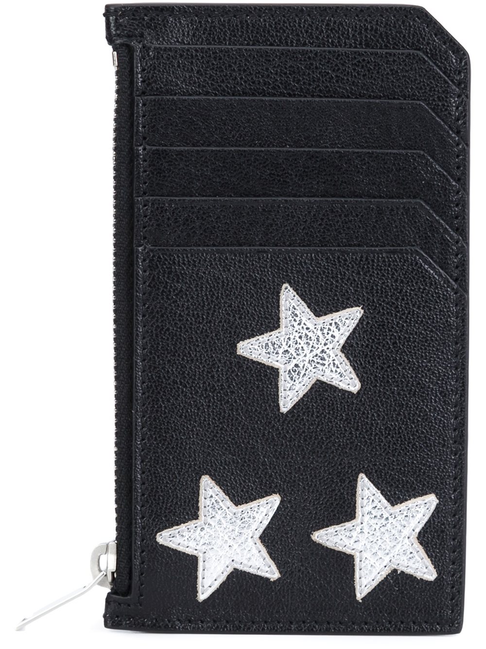 - Saint Laurent 黑色与银色 水牛皮质 'Rider California'卡夹。 顶部有拉链, 银色五金配件, 内置标签, 刺绣细节, 多个夹层。