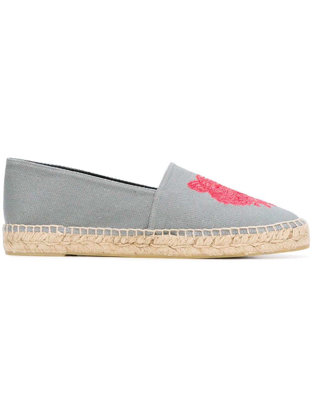- Kenzo 灰色与粉红色 全棉 'Tiger'草编鞋。 圆头, 正面饰有刺绣标志, 鞋垫饰有品牌标识, 编织拉菲草质鞋底, 橡胶鞋底。