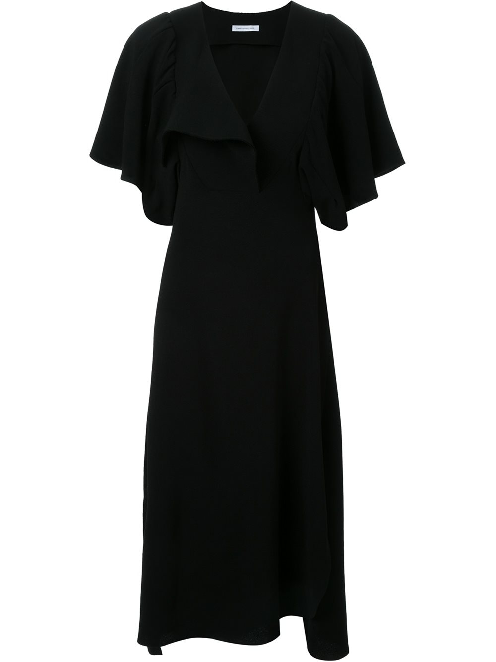 - Christopher Esber 黑色 全棉 披肩领连衣裙。