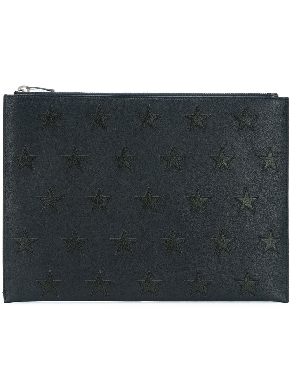 - Saint Laurent (圣罗兰) 海军蓝色与黑色 牛皮 'Rider California'手拿包。 顶置拉链, 银色五金配件, 全衬里, 内置贴袋, 内置标牌。