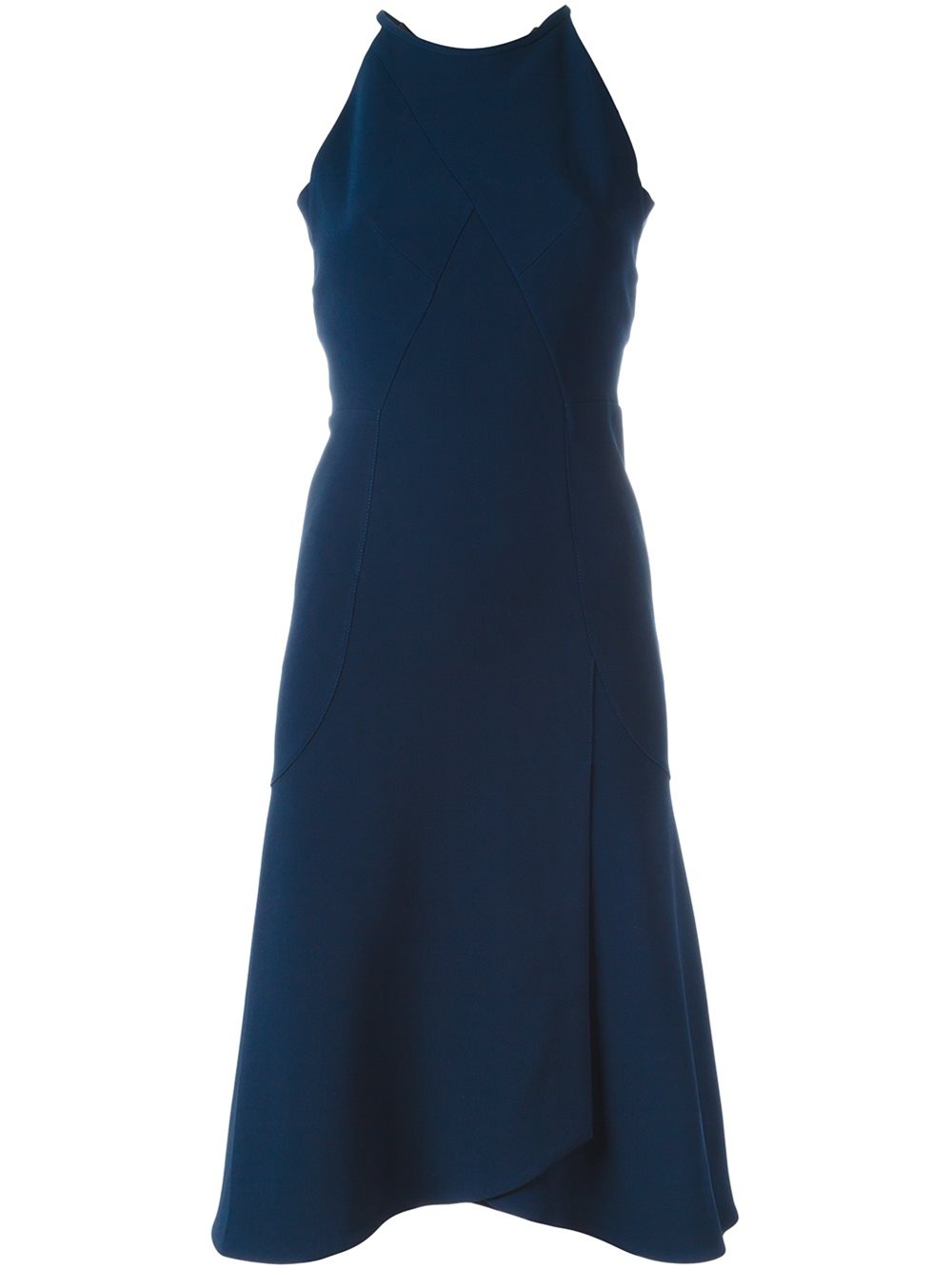 - Roland Mouret 海军蓝色 弹性丝绸 镂空细节连衣裙。