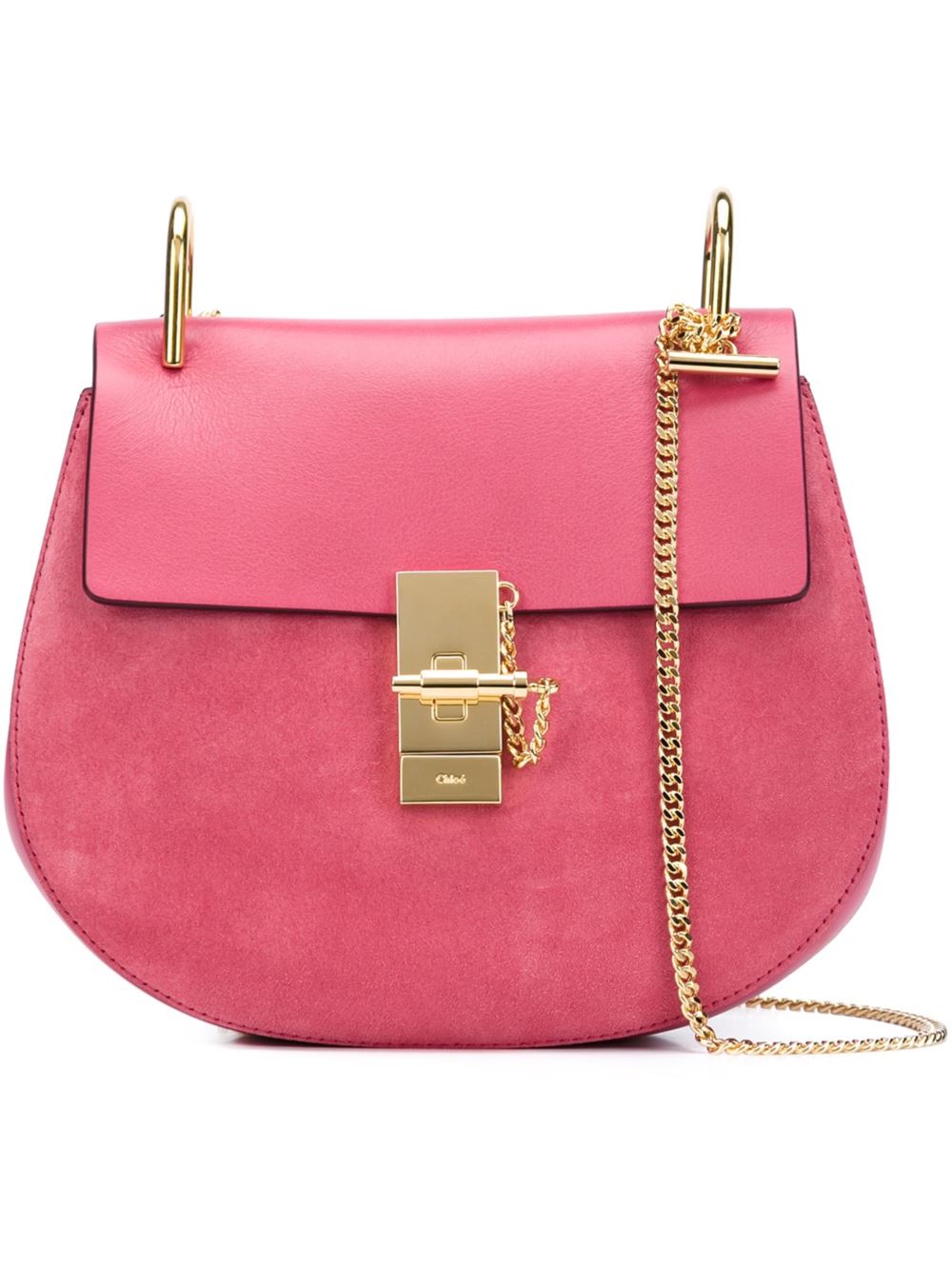 - Chloé 粉色 小羊皮与绒面皮 'Drew'单肩包。