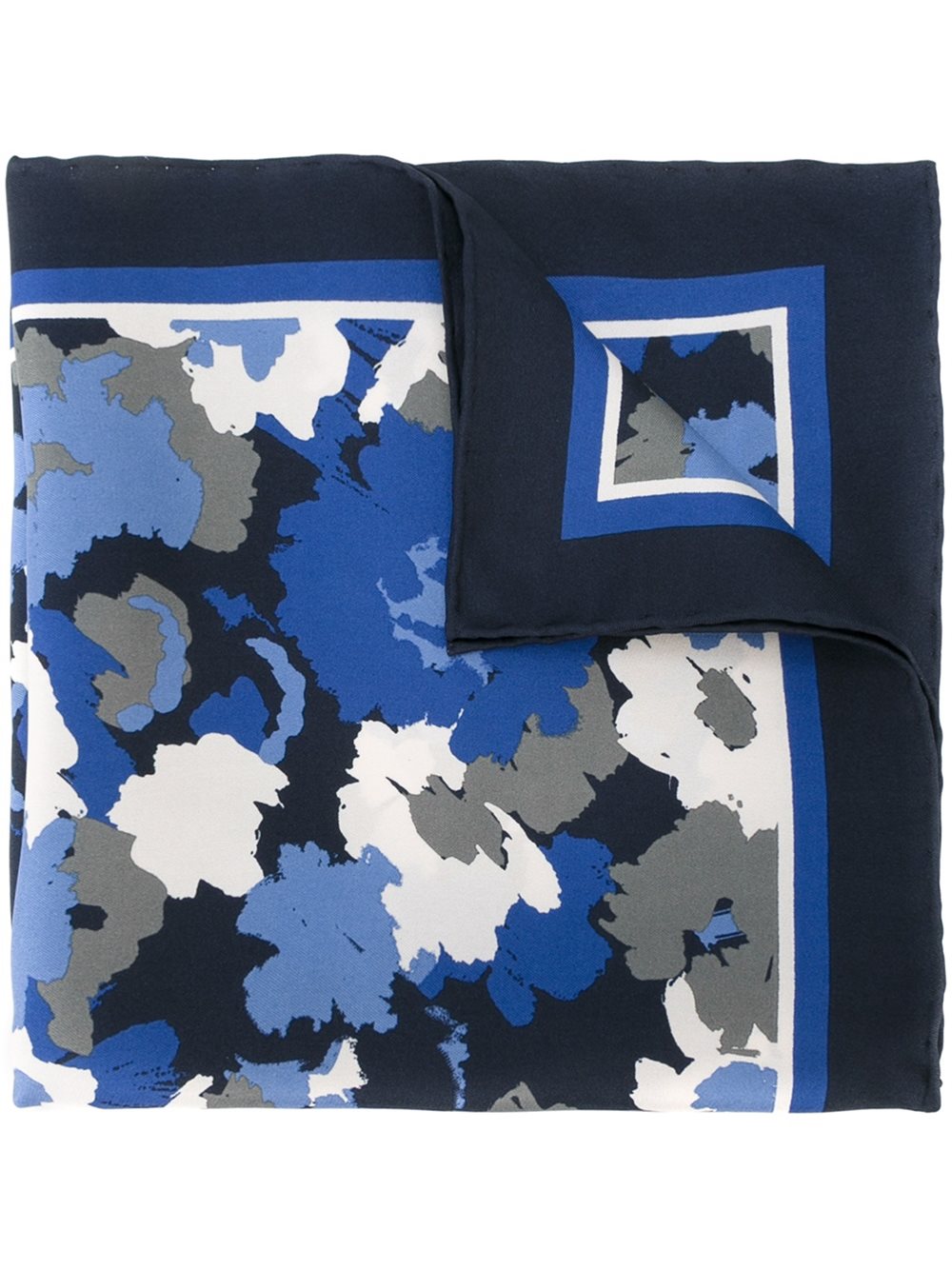 - Kiton 蓝色 丝绸 花朵涂鸦口袋方巾。