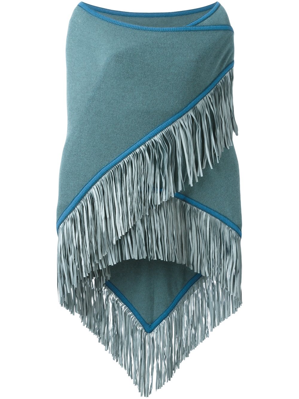 - Antonia Zander 绿色 羊绒与牛皮 'Fransenschal'斗篷。