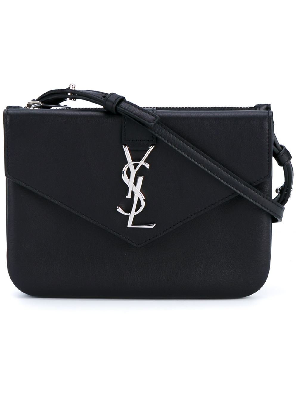 - Saint Laurent 黑色 牛皮 'Tri-Pocket'斜挎包。