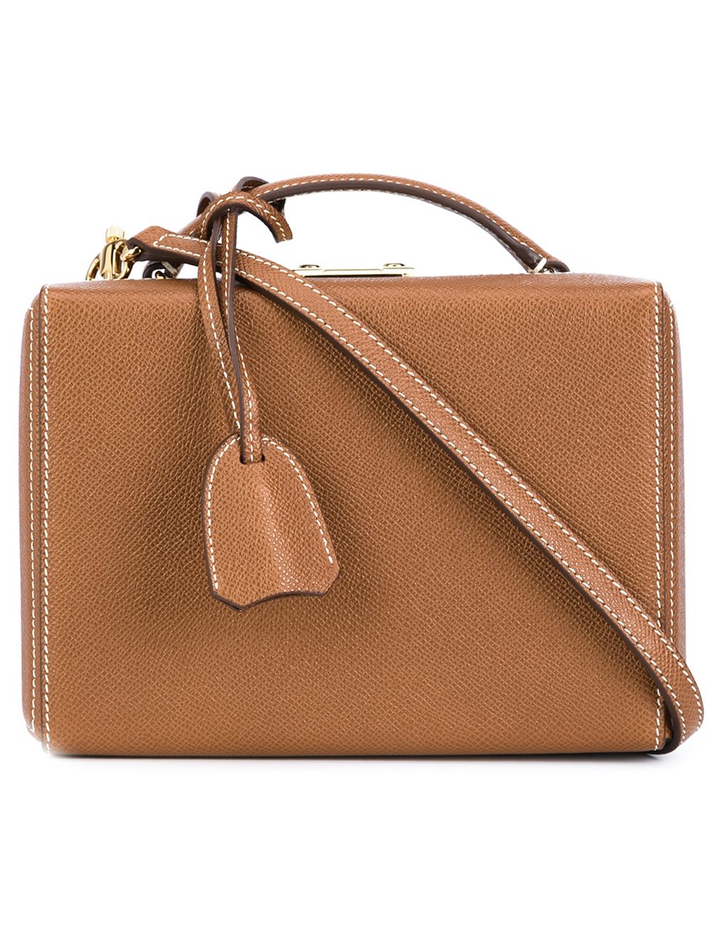 - Mark Cross 褐色 牛皮 'Grace'盒狀斜跨包。