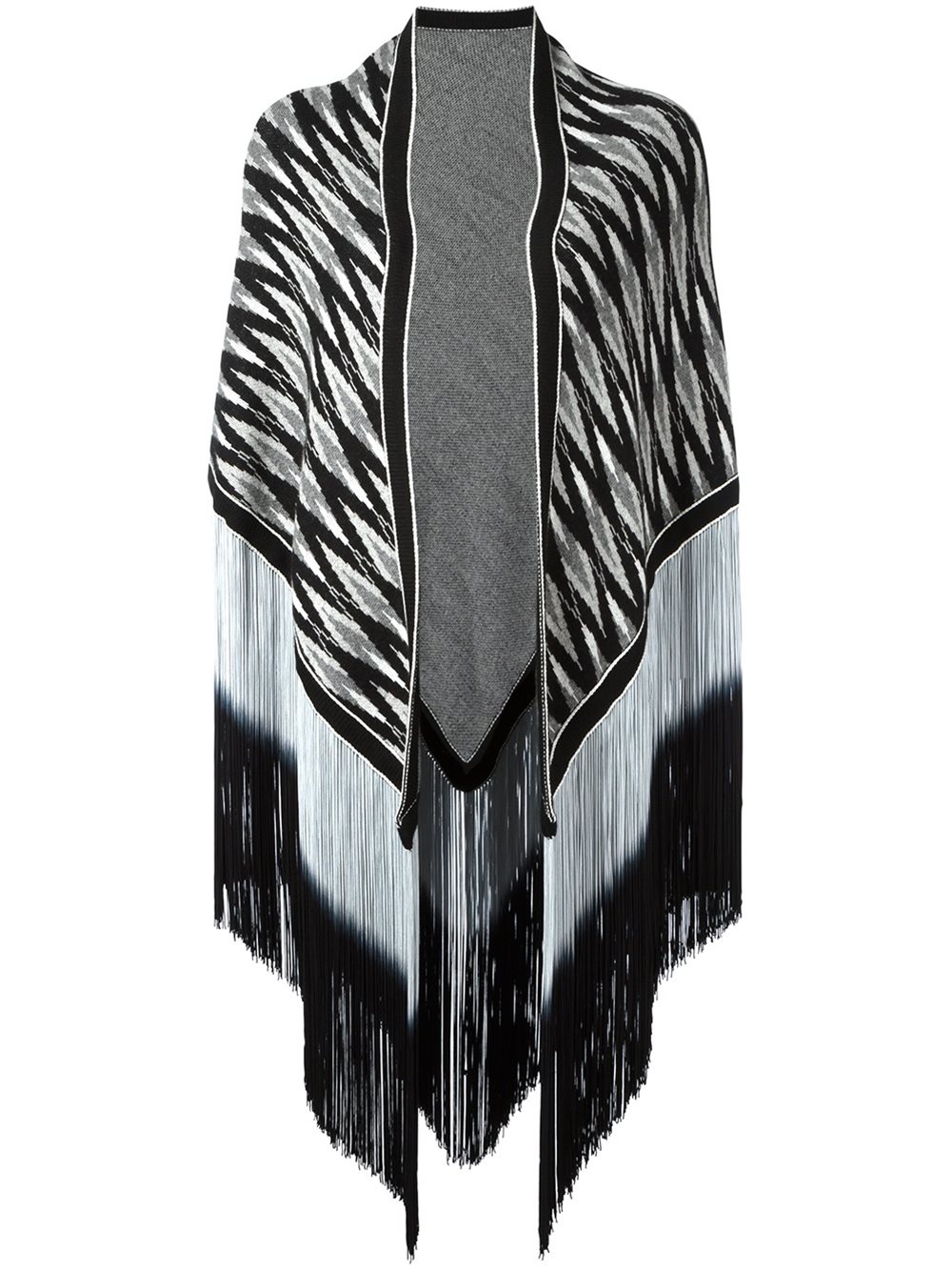 - Antonia Zander 黑色与灰色 羊绒 流苏斗篷。