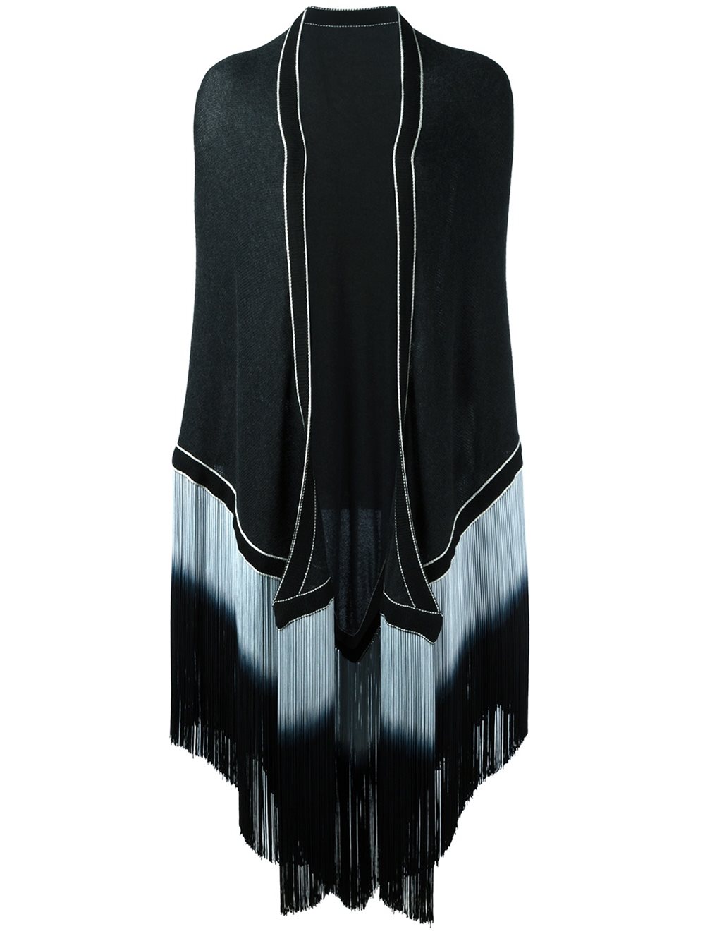 - Antonia Zander 黑色与白色 羊绒 流苏斗篷。