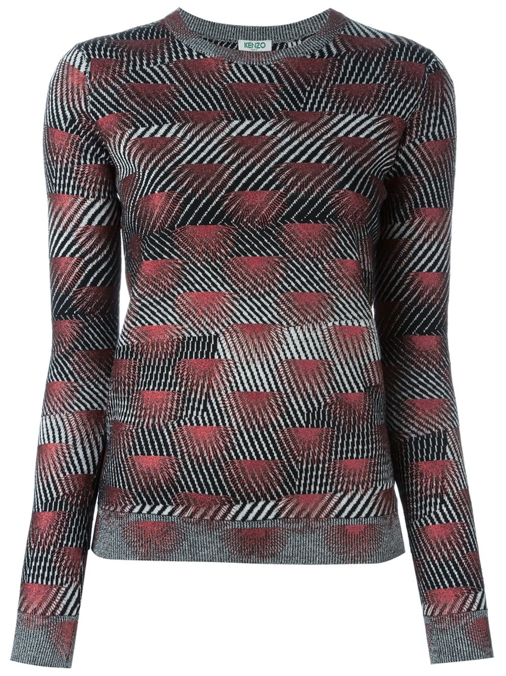 - Kenzo 多色 羊毛与棉质混纺 'Nagai Star'毛衣。 罗纹针织圆领, 长袖, 罗纹底边及袖口。