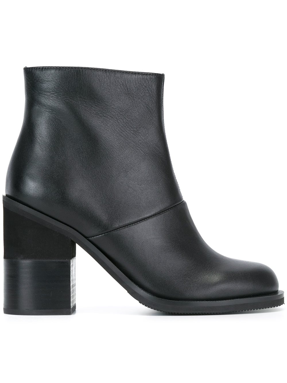 - Jil Sander Navy 黑色 牛皮 方块跟及踝靴。