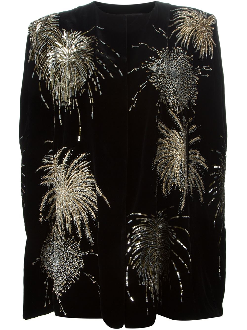 - Saint Laurent 黑色 真丝混纺 刺绣斗篷。 圆领, 立体肩, 开襟, 珠绣, 平直下摆。