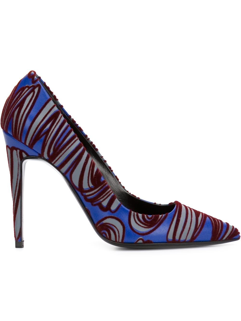 - Pierre Hardy 酒红色蓝色灰色 丝绒与牛皮 'Ultime'高跟鞋。 尖头, 细高跟。