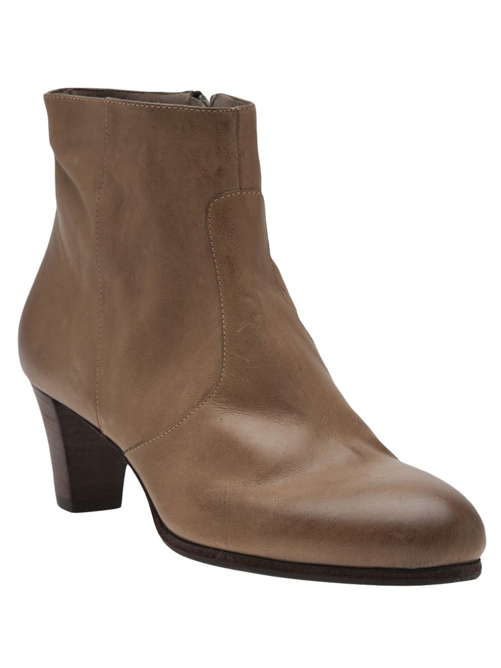 - Laboratorigarbo 褐色 真皮 'Ariel‘侧拉链饰粗跟短靴。 圆头, 侧置拉链, 中跟。