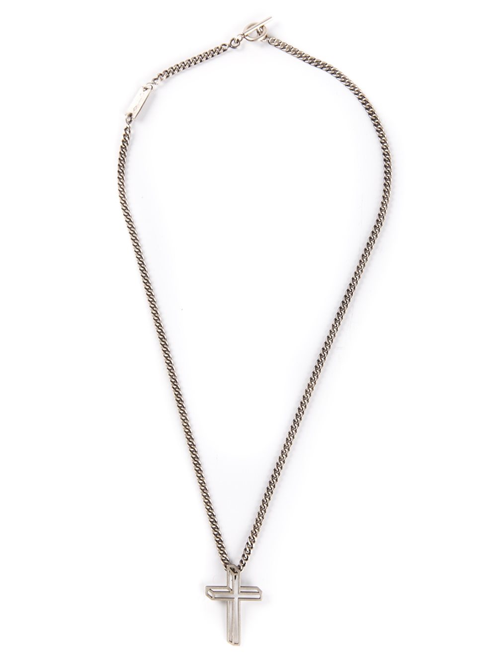 - Saint Laurent 银色 黄铜 立体十字架项链. 钩眼扣. 钢缆链. 十字架挂坠.
