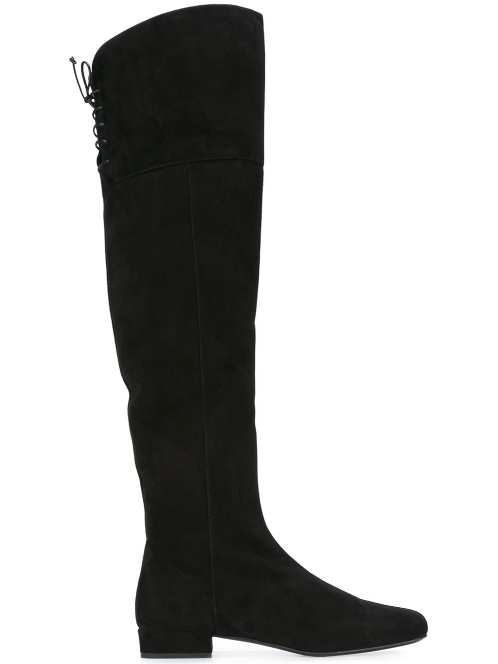 - Saint Laurent (圣罗兰) 黑色 牛皮与绒面皮 'BB'过膝靴。 圆头, 侧置拉链, 后置绑带, 低跟。