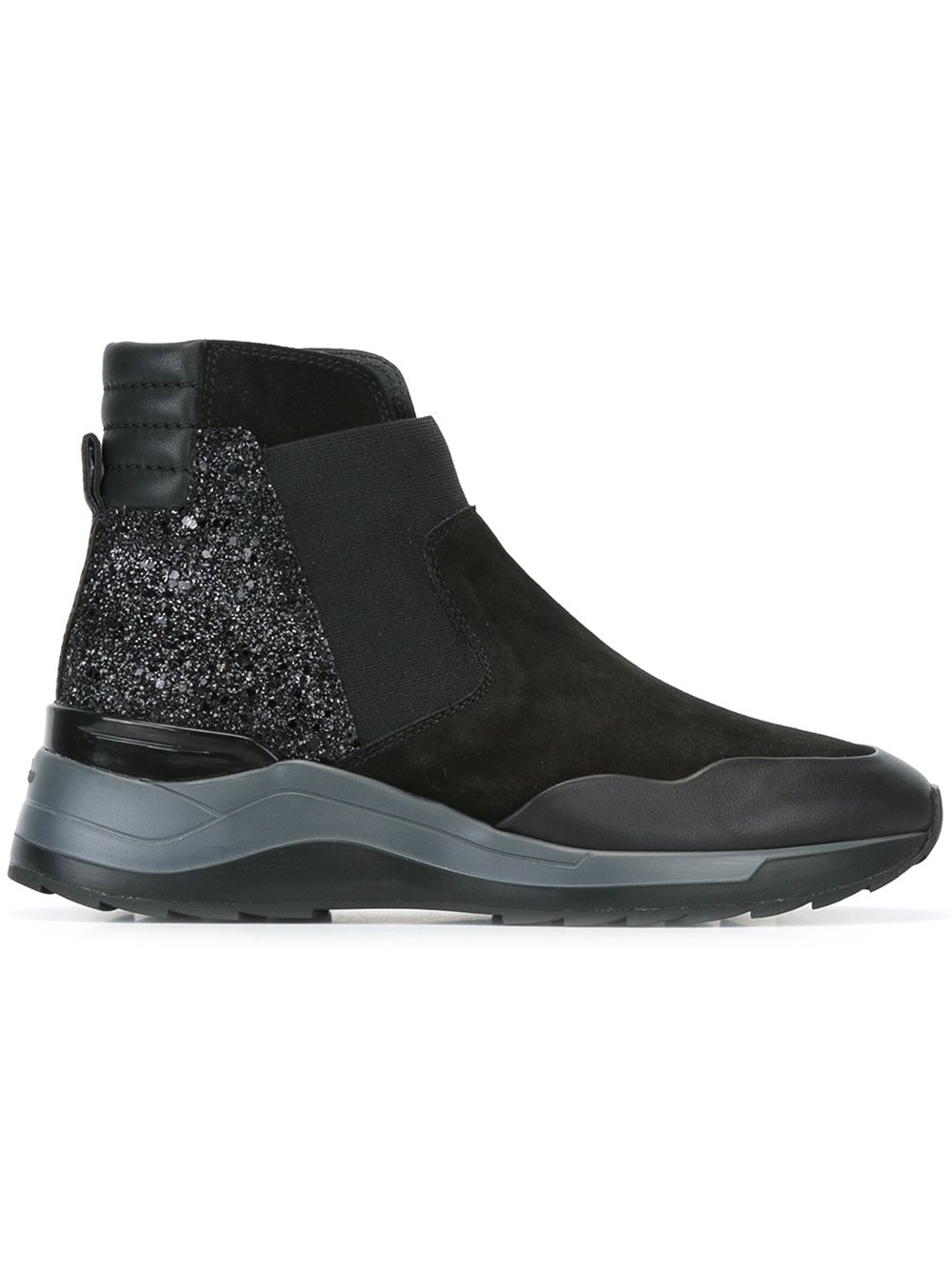 - Hogan Rebel 黑色 小牛皮与绒面皮 拼接及踝靴。