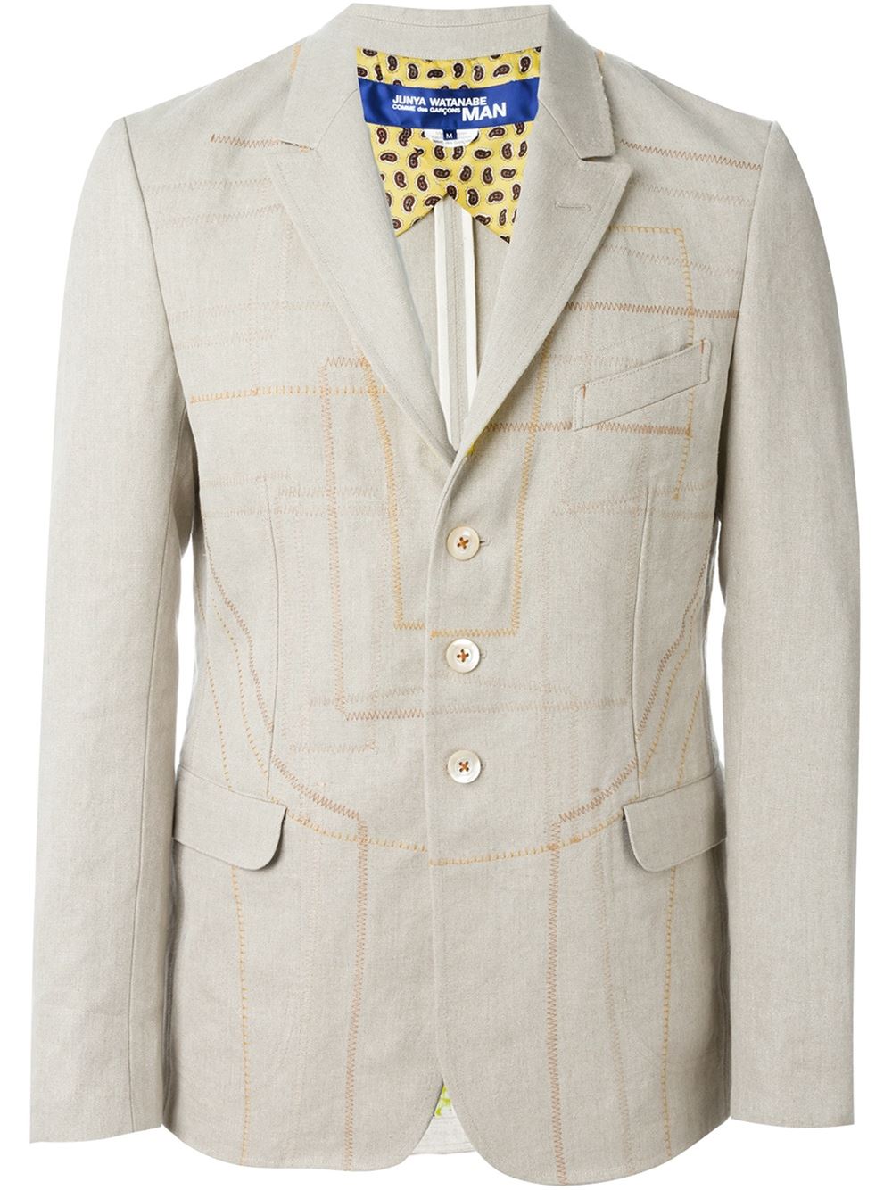 - Junya Watanabe Comme Des Garçons Man 米色 亚麻与羊毛 对比缝线西装夹克。