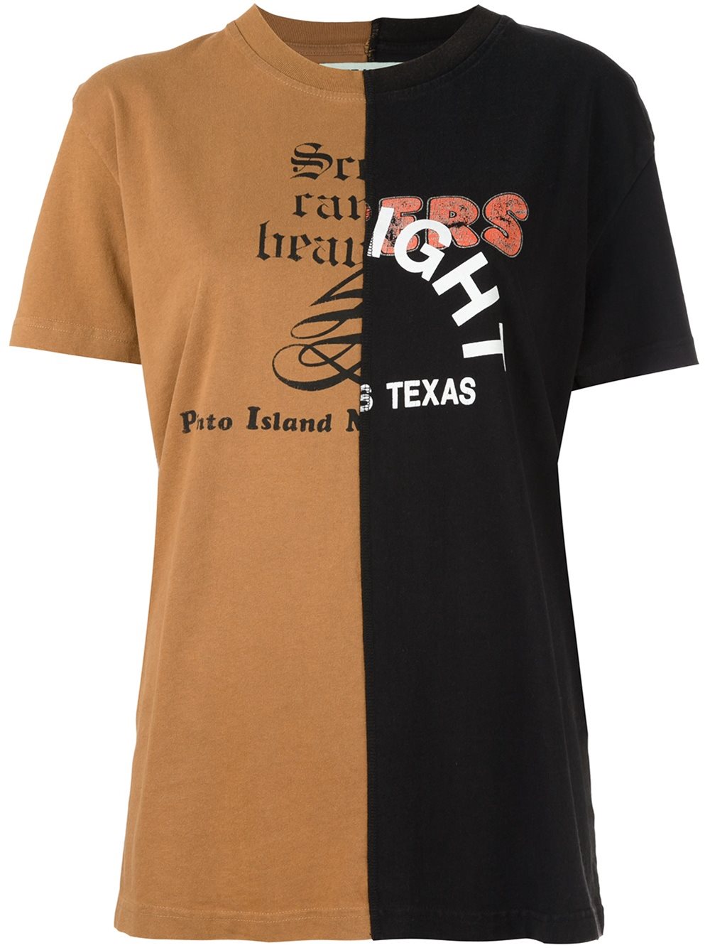 - Off-White 褐色 全棉 拼色T恤。