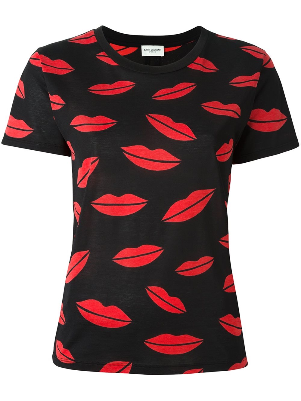 - Saint Laurent 黑色与红色 全棉 嘴唇印花T恤。 圆领, 短袖, 大面积花纹, 平直下摆。这件商品尺码适中。