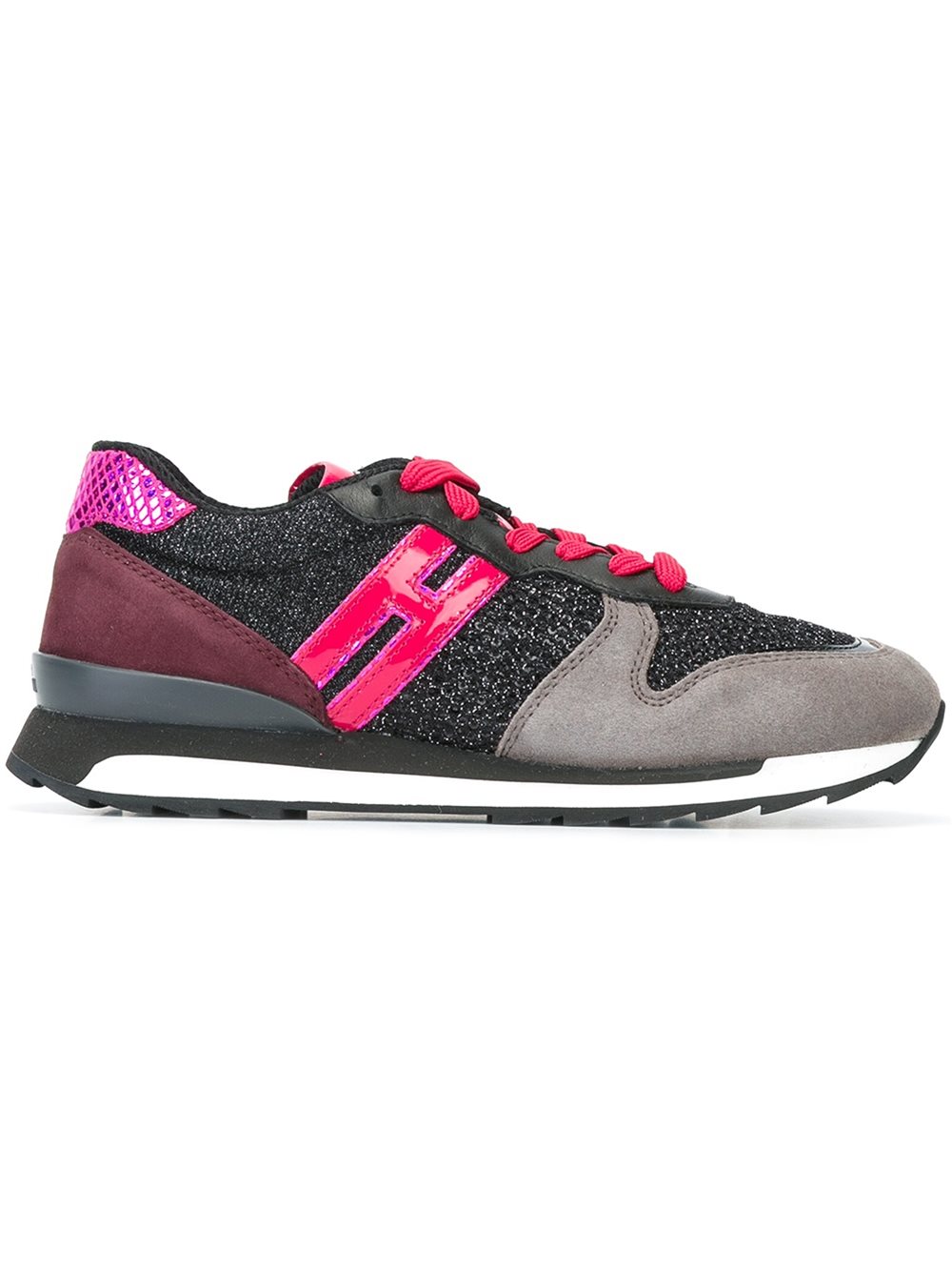 - Hogan Rebel 黑色 小牛皮与绒面皮 拼接系带运动鞋。