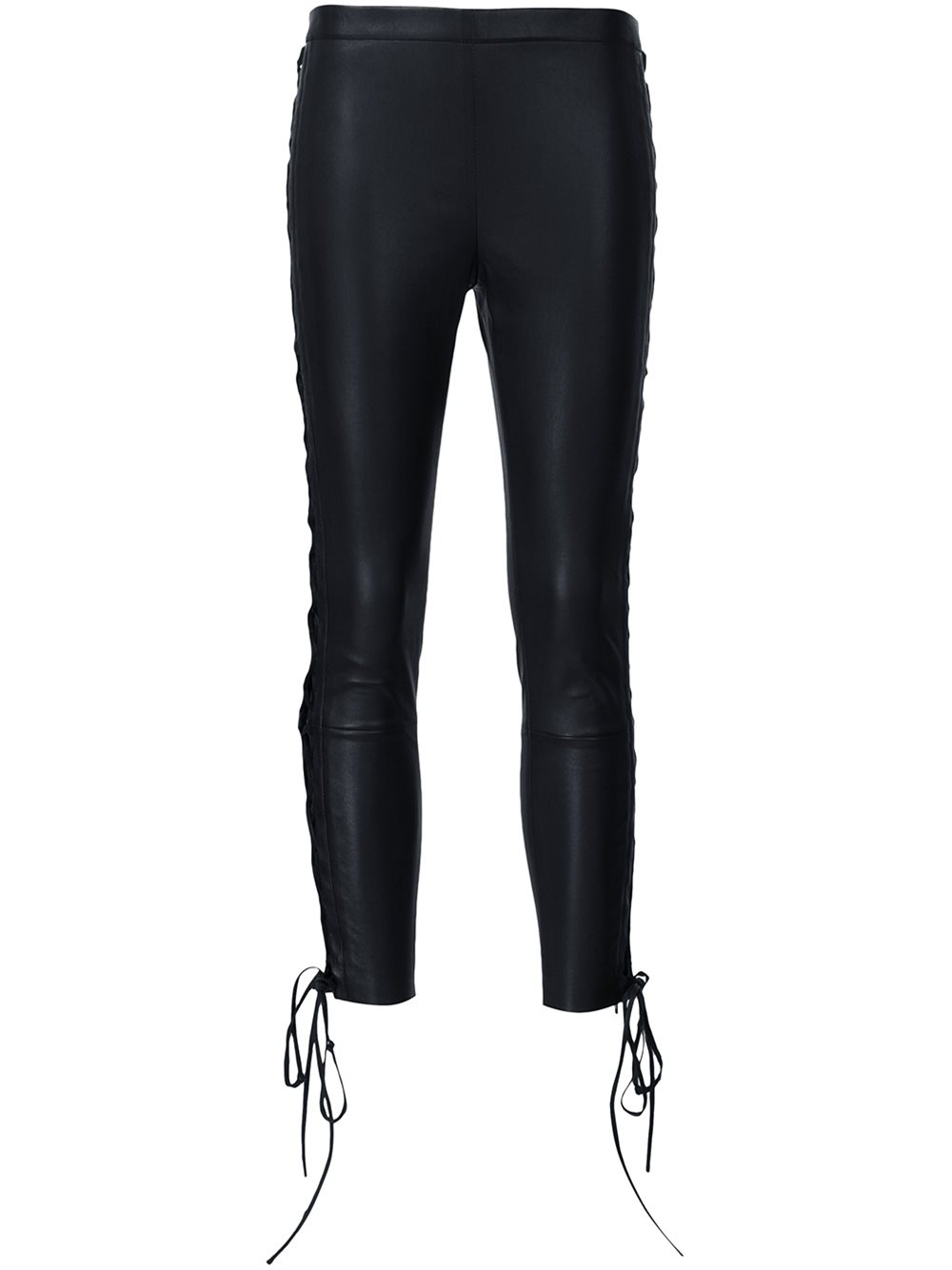 - Haider Ackermann 黑色 牛皮 系带打底裤。