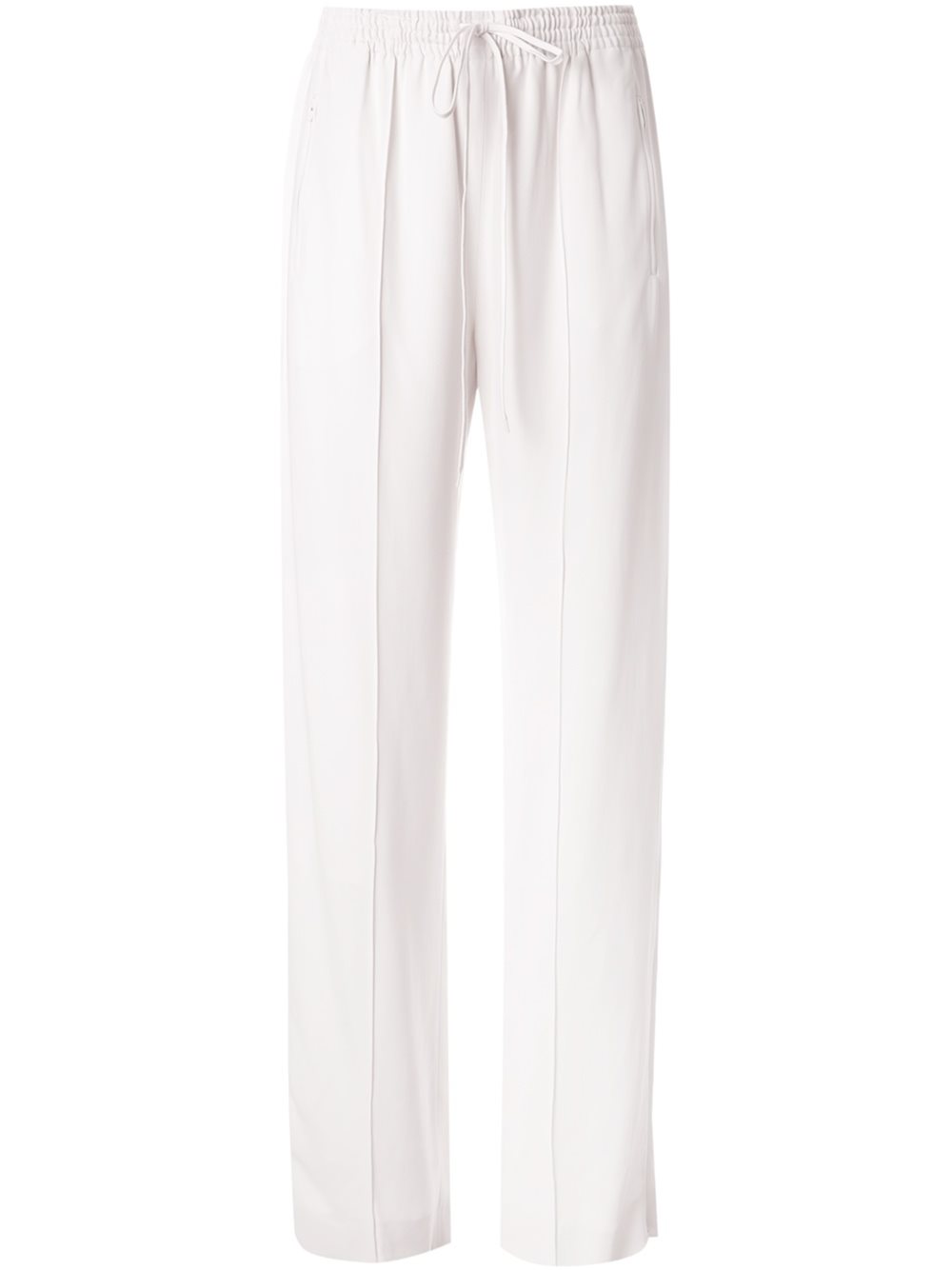 - Chloé (寇依) 暗灰褐色 抽绳长裤。 附加抽绳的弹性松紧腰边, 侧置拉链口袋, 后置口袋, 直筒腿。
