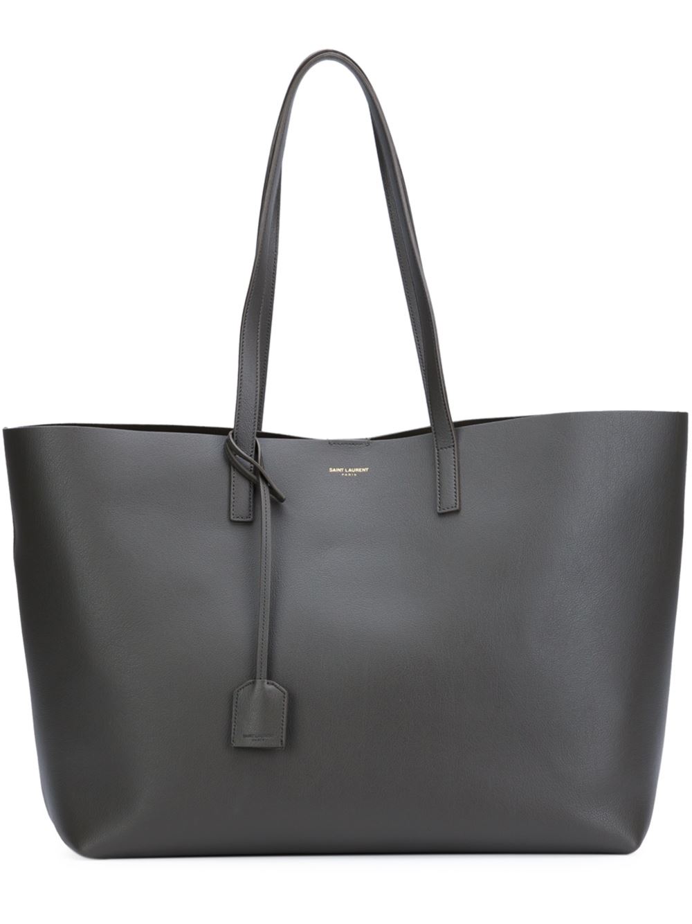 - Saint Laurent 黄酮色 小牛皮 大号购物手提包。 顶部有弧状手柄, 正中有品牌标记, 皮质吊牌。