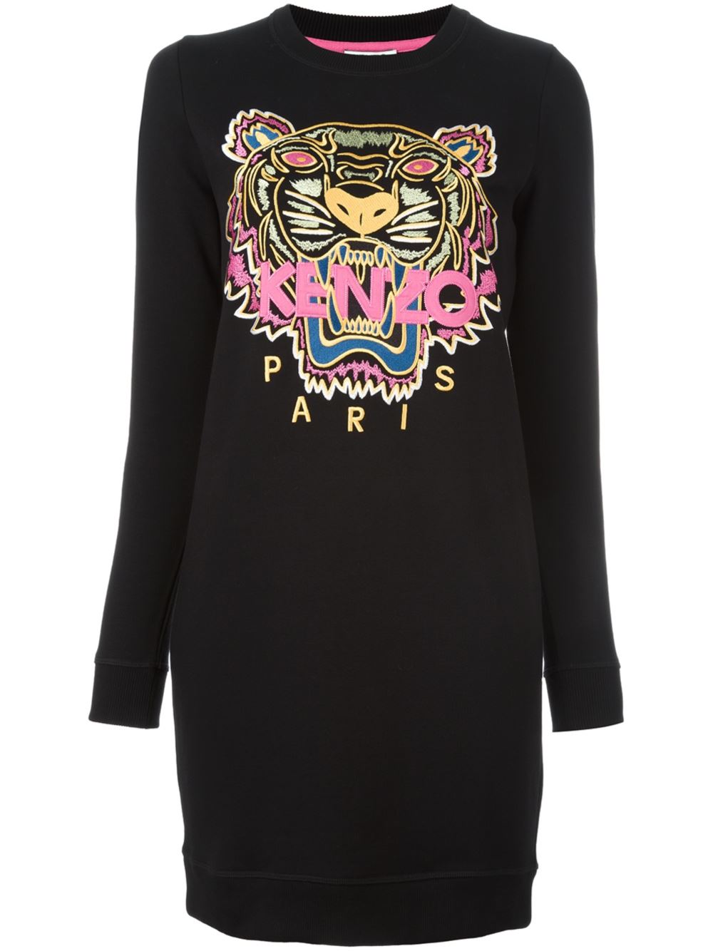 - Kenzo 黑色 全棉 'Tiger'套头连衣裙。 罗纹针织圆领, 刺绣细节, 长袖, 罗纹底边及袖口。