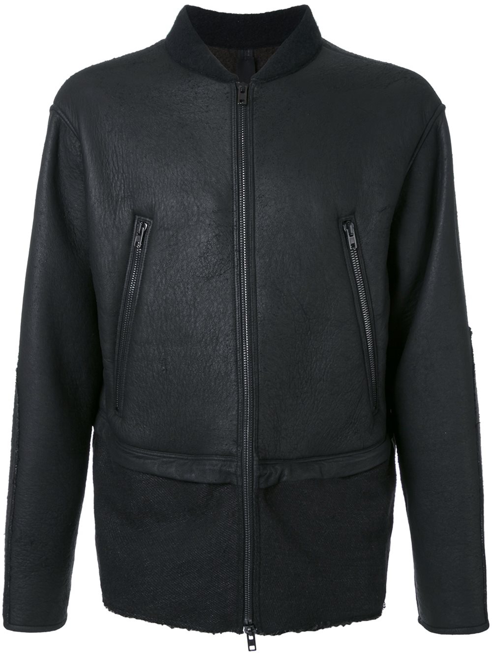- Isabel Benenato 黑色 牛皮与棉质混纺 皮质飞行员夹克。