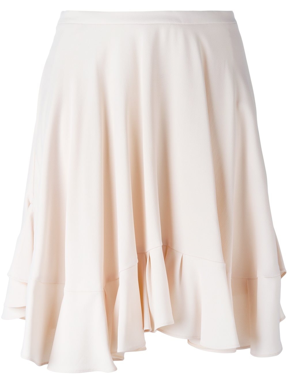 - Chloé (寇依) 浅粉色 真丝 荷叶边下摆半身裙。 中腰, 后置拉链, 短款。